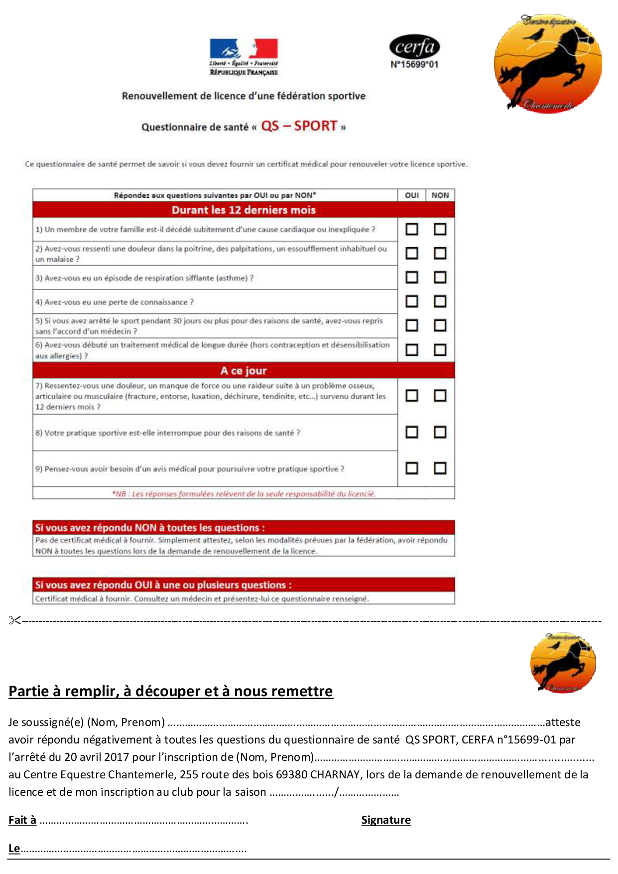 - Le questionnaire de santé pour ceux ayant fournit leur certificat médical sur les 2 dernières saisons (en 2022,2023,2024)